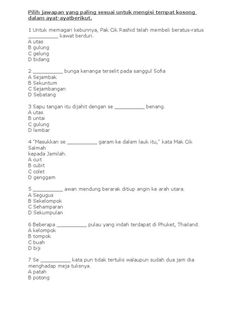 Dec 12, 2020 · penjodoh bilangan prihatinnya keluargaku pasang kaki naskhah potong bijak bahasa penjodoh bilangan ialah kata yang hadir di antara kata bilangan dengan kata nama dalam sesuatu frasa nama. Yen ni menghulurkan se_____ cermin mata kepada datuk. Keluarga yen ni di ruang tamu. Datuk duduk di atas sebuah kerusi rehat.